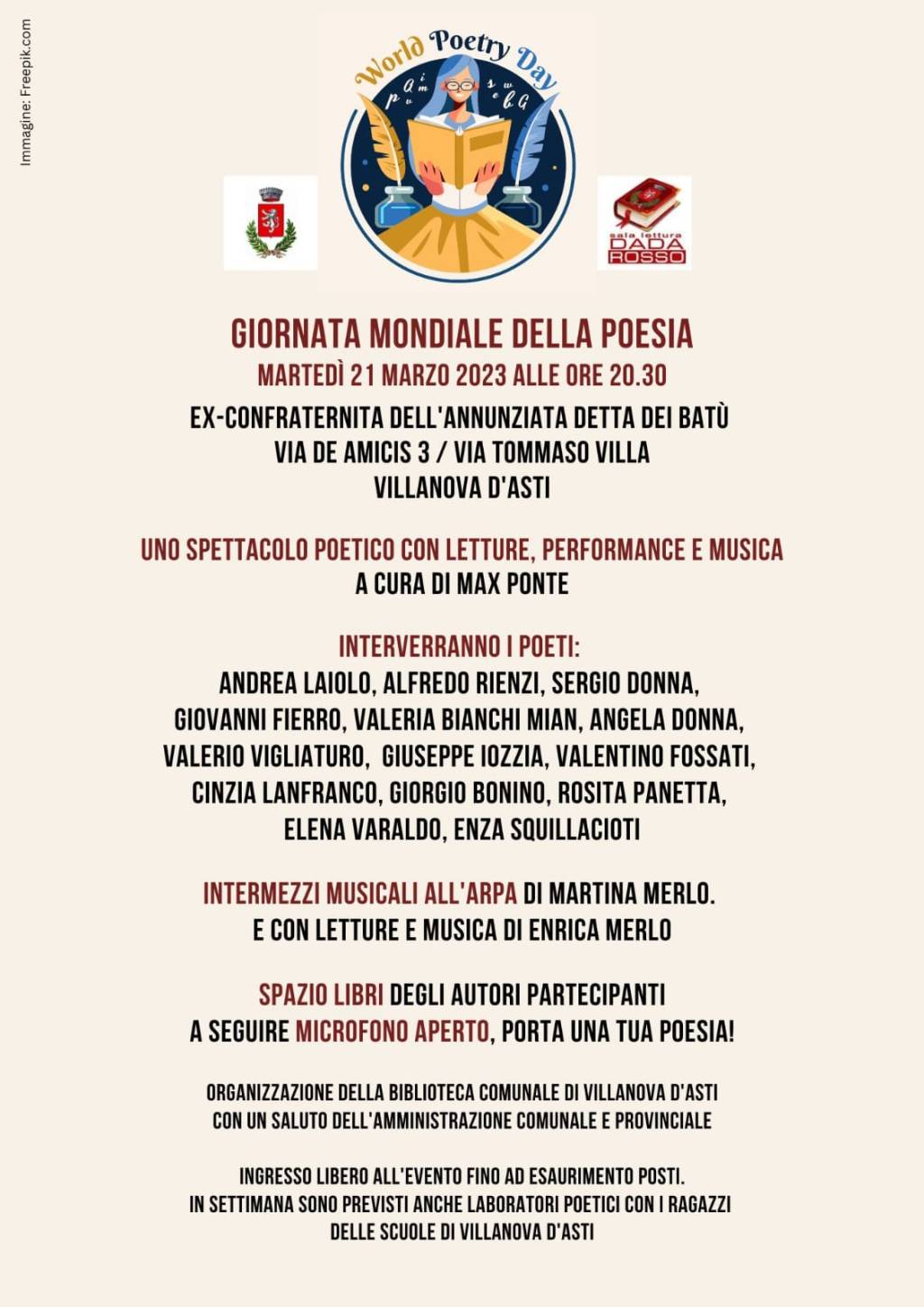 Il 21 marzo a Villanova si festeggia la Giornata Mondiale della Poesia.