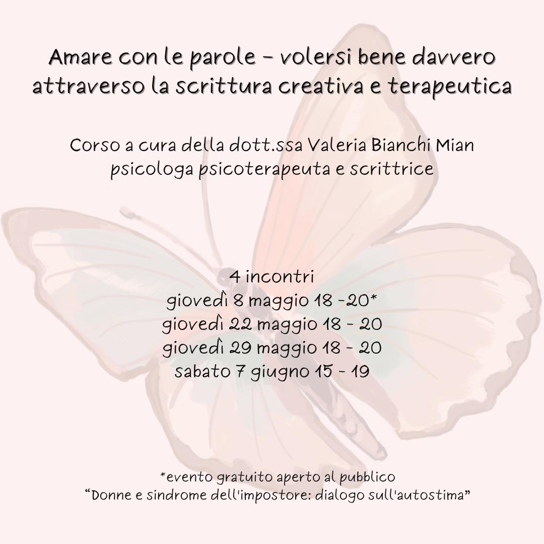 * Valeria Bianchi Mian tiene un corso di scrittura creativa incentrato sul volersi bene. La prima lezione è gratuita. Le altre? Un costo popolare per un percorso in presenza e online tutto dedicato all’AMORE.