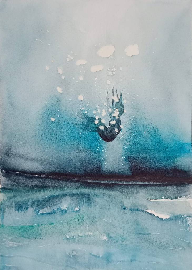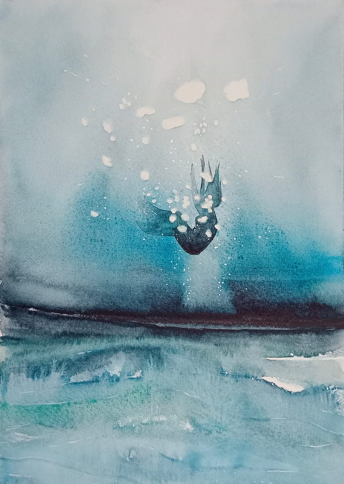 Giorgia, il blu dei suoi acquerelli, le parole che volano e si posano leggere sulla carta. Appaiono, barlumi, scompaiono e nuotano, viaggiano sopra e sotto le acque. Una selezione di inediti e scorci di indaco, bianco piuma, sogno.