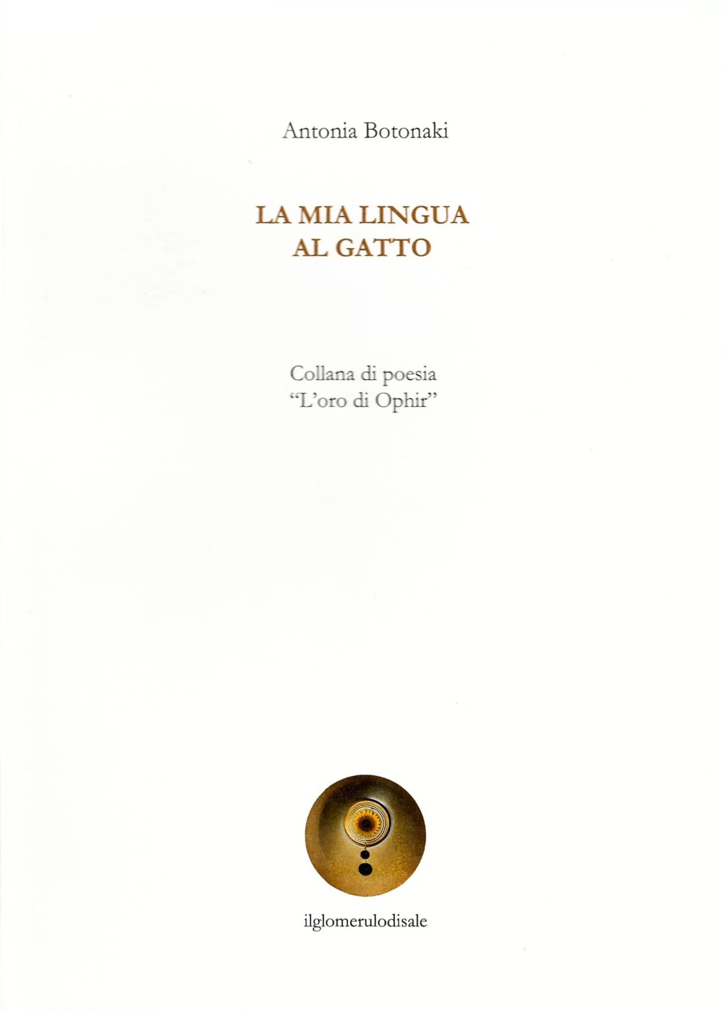 La poesia di Antonia Botonaki è una poesia dallo stile libero e prosastico che con un respiro ampio si spinge fino a un territorio di confine dove i microracconti offrono una piena immersione nel paesaggio interiore dell’autrice. La mia lingua al gatto custodisce in sé la bellezza variegata e sonora del regno animale, una flora mite in cui perdersi, la magia della terra cantata da Omero, ma anche il peso portato lungo il tempo dalle donne dell’entroterra. In queste pagine c’è da aspettarsi una contestazione decisa al sistema socioculturale che “abbraccia” come un giogo. […] Il ricorso puntuale alla metafora offre a Antonia la possibilità di muoversi nella terra fragilissima dell’inconfessabile; emblematica la poesia “Esche vive”. La donna che vede trascinare il proprio cuore nel ghiaccio dai cani, che lo offre in pasto, come una ciambella, sa chiamare a raccolta le grandi poetesse statunitensi Emily Dickinson e Anne Sexton sul Golgota del suo dolore e di quello universale. La Botonaki può essere a ragione considerata l’emblema di chi riesce a trattare temi viscosi con originalità prescindendo dal protagonismo che troppo affligge la poesia contemporanea. Dunque, se una certa crudezza, associata a un forte attrito, sferza e appuntisce il verso è altrettanto vero che una corrente sotterranea di sensualità lo avvolge restituendo un “respiro affannato che esprime consenso”. […] Nonostante la contemporaneità della poetessa, una cultura ricca di tradizioni secolari, scandita dal ritmo delle stagioni e dalle festività religiose, emerge dal corpo poetico e le reliquie, le pietre, le abbazie, come piccole isole affiorano tra le pagine, sono bagliori di un passato che ritorna e si allunga tra grilli mutilati, scarabei dorati dal sole, crepitii di alberi e un popolo di emarginati scoperti dal vento di Vardaris più che dall’autorità preposte. Antonia denuncia e disvela, tra la decadenza dei bordelli e un calore di colonia economica, un’umanità seducente nella sua fragilità che porta addosso ancora l’odore umido delle caverne misto al profumo di interiora lavorate dal fuoco. La carne, la vita, nelle manifestazioni primarie, si agitano in una culla primigenia e il greco torna a soffiare. […] Dunque, la Botonaki narra una storia unica e universale sullo sfondo di una Grecia che non ha dimenticato il mito e inaugura la Collana “L’oro di Ofir” con pagine dure, oniriche e sensuali.