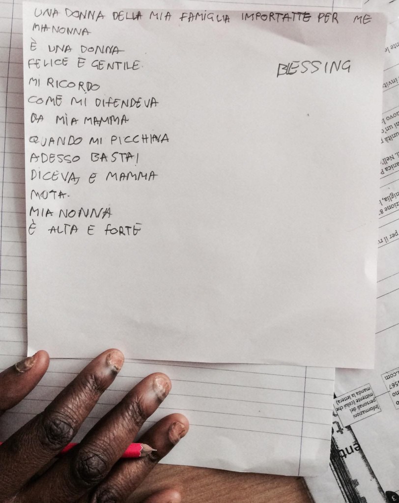 “Pollicine e il bosco dei ricordi” è il titolo di un altro laboratorio molto intenso, a cui hanno partecipato giovani donne straniere del CPIA 2 di Torino: a partire dai loro ricordi su “una donna di famiglia importante”, “un’esperienza felice”, “un momento di grande rabbia”, abbiamo lavorato da un lato a ricomporre un’identità segnata dall’emigrazione e da esperienze a volte molto traumatiche, dall’altra all’apprendimento della lingua seconda. Le difficoltà sono state molte, ma l’incontro con queste ragazze ci ha regalato perle preziose, come il testo di Kadidiatou: