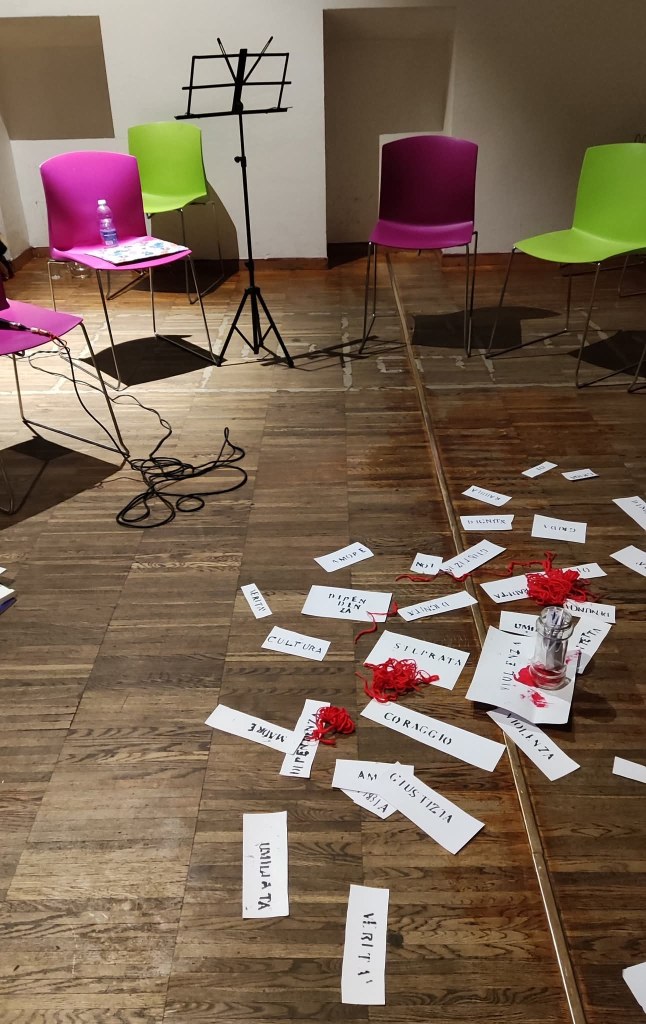 Terapeutico è accogliere l’elemento privato, la memoria del trauma che emerge dai racconti, ma quando non è elaborabile nel tempo-spazio a nostra disposizione, è la parola poetica a creare la magia, ad alleggerire oppure a rimandare ad altri successivi sviluppi.
