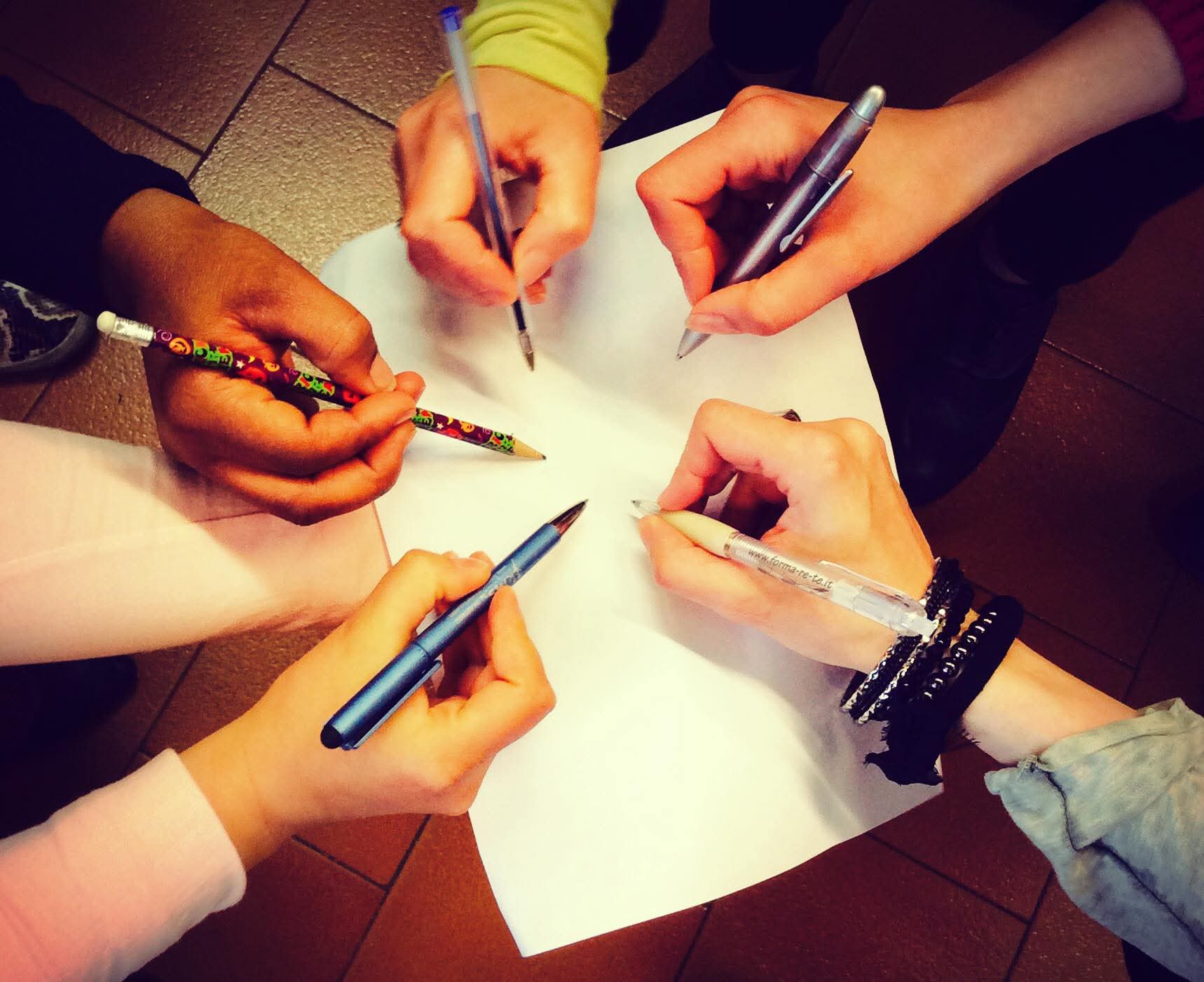 “Pollicine e il bosco dei ricordi” è il titolo di un altro laboratorio molto intenso, a cui hanno partecipato giovani donne straniere del CPIA 2 di Torino: a partire dai loro ricordi su “una donna di famiglia importante”, “un’esperienza felice”, “un momento di grande rabbia”, abbiamo lavorato da un lato a ricomporre un’identità segnata dall’emigrazione e da esperienze a volte molto traumatiche, dall’altra all’apprendimento della lingua seconda. Le difficoltà sono state molte, ma l’incontro con queste ragazze ci ha regalato perle preziose, come il testo di Kadidiatou: